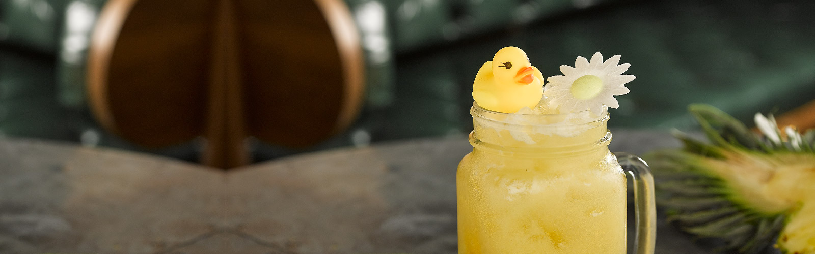 - Top with crushed ice, an edible flower and of course, your contraband duck and get sippin’.